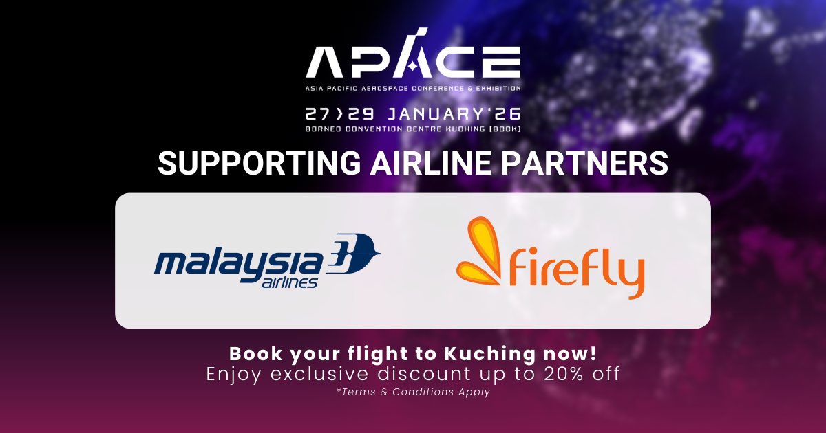 APACE 2026 is proud to announce our Supporting Airlines with Malaysia Airlines and Firefly for this inaugural event. Enjoy exclusive airfare discounts when you fly into Kuching to attend APACE 2026—whether you're traveling from across Malaysia or around the globe. Make your journey seamless and experience the warm hospitality that Malaysia is known for.